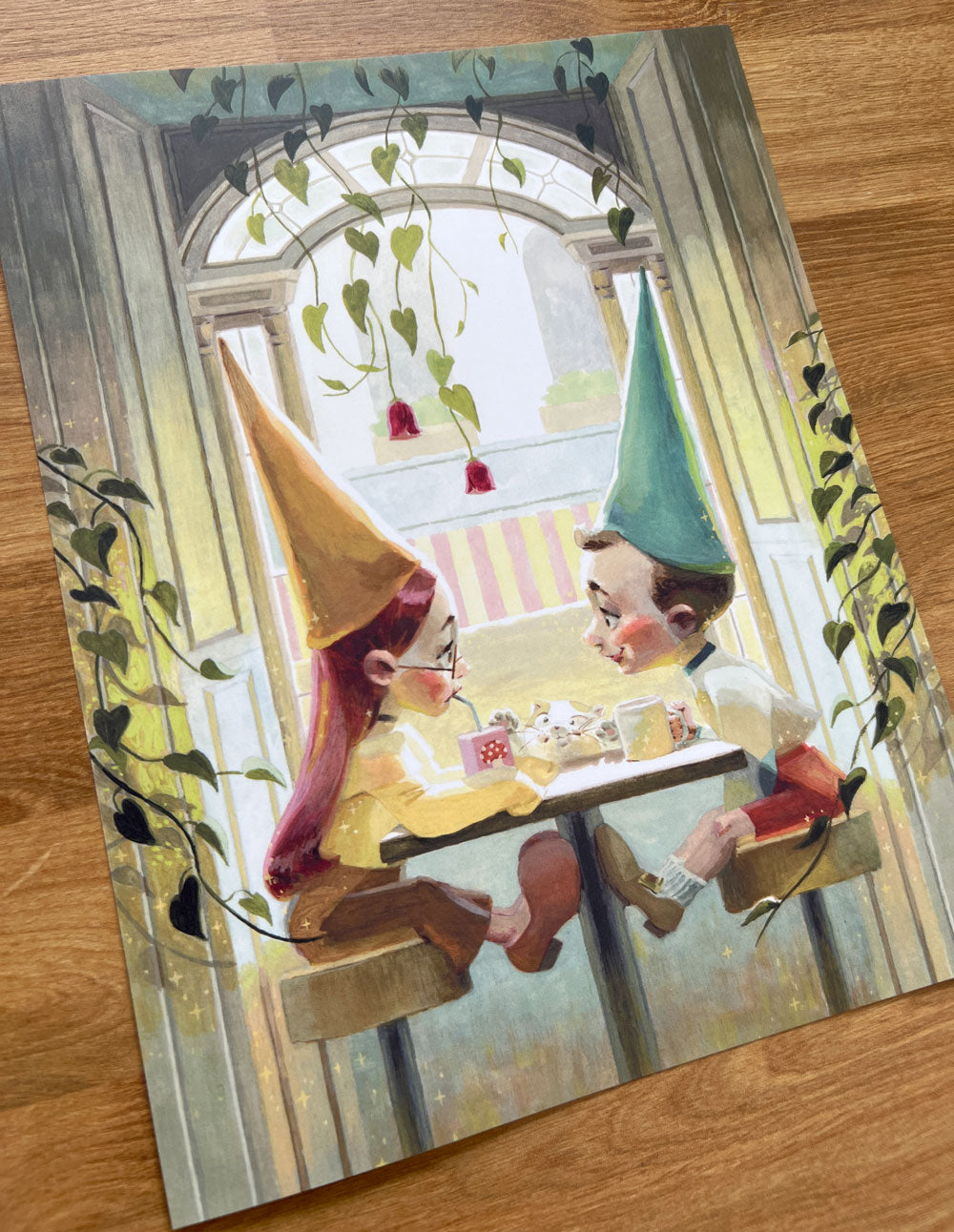 8.5"x 11" print on 14pt uncoated (matte) card stock.